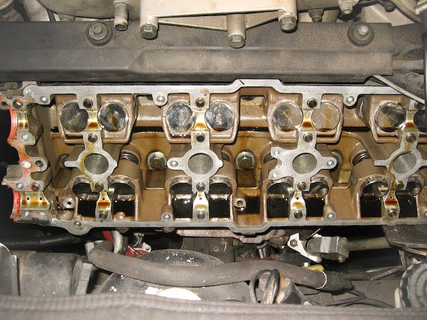 Auto przyjechało na rutynową wymianę rozrządu i uszczelnienie. Do wymiany okazały sie m.in. uszczelki pod głowiczkami z wałkami w wyniku wycieków oleju. Do wykonania tej operacji niestety niezbędne okazało się wyjęcie silnika - nie da się ich zdjac na aucie gdyż uniemożliwiają to ściany komory silnika w okolicy przednich kolumn zawieszenia. Po wyjęciu silnika okazało się, że ktoś wcześniej wyrwal kompresor klimatyzacji razem z kawałkami bloku a dziury załatał prowizorycznie i nieszczelnie, co powodowało niewielki wyciek oleju spod miski olejowej. Zdecydowaliśmy sie zdjąć miskę oleju żeby stwierdzić jak duże sa te wyrwy w bloku. Ogladajac silnik od spodu zobaczyliśmy zgięty korbowód. Decyzją z tym bezpośrednio związaną było zdjęcie jednej z glowic w celu dalszej weryfikacji tłoka, cylindra i głowicy. Po zdjeciu głowicy na uszczelce odkryliśmy miejsce przecieku wody do drugiego cylindra czyli powod skrzywienia korbowodu. Skończyło sie na decyzji o kompletnym remoncie silnika.
